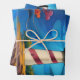 Schönes rot-weiß gestreiftes Leuchtturm auf einem Felsvorsprung umgeben von Blume und blauem Wasser/Himmel Kunst von minx267