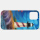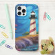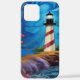 Schönes rot-weiß gestreiftes Leuchtturm auf einem Felsvorsprung umgeben von Blume und blauem Wasser/Himmel Kunst von minx267