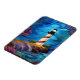 Schönes rot-weiß gestreiftes Leuchtturm auf einem Felsvorsprung umgeben von Blume und blauem Wasser/Himmel Kunst von minx267