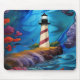 Schönes rot-weiß gestreiftes Leuchtturm auf einem Felsvorsprung umgeben von Blume und blauem Wasser/Himmel Kunst von minx267