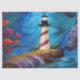 Schönes rot-weiß gestreiftes Leuchtturm auf einem Felsvorsprung umgeben von Blume und blauem Wasser/Himmel Kunst von minx267