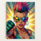 Eine farbenprächtige, lebendige Frau in Regenbogensonnenbrille LGBT Lesbian Mohawk Uppercut Pop Art personalisierter Planer.