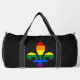 Duffle Bag with fleur-de-lis (fleur-de-lys or lily flower) symbol with rainbow stripes from LGBT (lesbian, gay, bisexual, and transgender people) flag, gay pride design