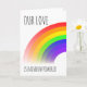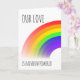 Eine LGBT-Theme-Grußkarte für die von Ihnen Liebe. Mit einem kühlen Regenbogen und den Worten "Unsere Liebe ist regenbogenförmig". Im Inneren ist Ihre eigene Nachricht leer