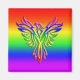 Ein wunderschöner LGBT-Kühlschrankmagnet. Es ist mit Prägung, Regenbogenfoenix, ausgestreckten Flügeln, die aus der Asche auf einem passenden Regenbogenuntergrund aufsteigen