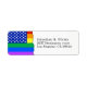 Individuelle Rücksendeadressen-Aufkleber, die auf die LGBT-Community zugeschnitten sind. Es ist mit einer amerikanischen Flagge im Regenbogenstil ausgestattet, die aus dem Adressetikett selbst herausgerissen scheint.