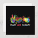 Diese Grußkarte zeigt die Worte "Friede, Liebe, Gleichheit" neben einem regenbogenfarbenen Friedensschild, Herz und Lippen und ist damit eine perfekte Ergänzung für Mitglieder und Verbündete der LGBTQ-Gemeinschaft, besonders während des Pride Month.