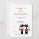 Fantastische Einladungen zum Hochzeitsfest, stilvolles und dennoch lustiges Design mit niedlichen glücklichen schwarzen Katzen, die als die beiden lesbischen Bräute gekleidet sind; auf der Rückseite ist ein rot-weiß hübsches Blumenmuster, sehr elegant.