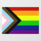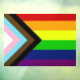 Die "Progress"-Variante der Regenbogenflagge fügt ein Zickzack entlang der Weste hinzu, das schwarze, braune, hellblaue, rosa und weiße Streifen aufweist, um diese Gemeinschaften (farbige Randgruppen, TransIndividuen, HIV/AIDS-Bewohner und verloren gegangene Menschen) in den Vordergrund zu rücken; "der Pfeil zeigt auf, dass die Vorwärtsbewegung sichtbar ist, während er am links Rand liegt, dass Fortschritte noch gemacht werden müssen."