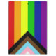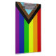 Die "Progress"-Variante der Regenbogenflagge fügt ein Zickzack entlang der Weste hinzu, das schwarze, braune, hellblaue, rosa und weiße Streifen aufweist, um diese Gemeinschaften (farbige Randgruppen, TransIndividuen, HIV/AIDS-Bewohner und verloren gegangene Menschen) in den Vordergrund zu rücken; "der Pfeil zeigt auf, dass die Vorwärtsbewegung sichtbar ist, während er am links Rand liegt, dass Fortschritte noch gemacht werden müssen."