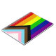 Die "Progress"-Variante der Regenbogenflagge fügt ein Zickzack entlang der Weste hinzu, das schwarze, braune, hellblaue, rosa und weiße Streifen aufweist, um diese Gemeinschaften (farbige Randgruppen, TransIndividuen, HIV/AIDS-Bewohner und verloren gegangene Menschen) in den Vordergrund zu rücken; "der Pfeil zeigt auf, dass die Vorwärtsbewegung sichtbar ist, während er am links Rand liegt, dass Fortschritte noch gemacht werden müssen."