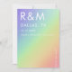 Überraschen Sie Ihre Gäste mit diesen modernen, minimalistischen Save the Date-Karten mit trendigem Regenbogenverlauf und benutzerdefiniertem Text. Ändern Sie den Text einfach, indem Sie auf die Option "Personalisieren Sie diese Vorlage" klicken.