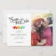 Lass allen wissen, dass ihr beiden euch auf einem Termin für eure Hochzeit mit diesem Regenbogenherz Save the Date niedergelassen habt. Personalisieren Sie das Foto, indem Sie Ihren Lieblingsnamen, das Datum und den Ort der Hochzeit hochladen.