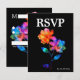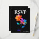 This RSVP enclosure card from the Petals & Pride collection is a vibrant celebration of love and inclusion, designed to complement your LGBTQ+ wedding suite with elegance and clarity. Set against a rich black background, the card features radiant rainbow florals—translucent petals in hues of red, orange, yellow, green, blue, and violet—that symbolize unity, joy, and pride. The layout is clean and modern, offering guests a simple way to confirm or decline your invitation with clearly marked response options. There's space to include guest names, number attending, and any special dietary needs, ensuring your celebration is as thoughtful as it is beautiful. Optional QR code integration allows for easy online replies, blending tradition with convenience. Matching items available across the Petals & Pride suite, including invitations, thank-you notes, signage, and more—each piece designed to reflect your love story in full color.