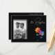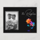 This custom photo reception card from the Petals & Pride collection blends personal warmth with vibrant style. Set against a sleek black background, radiant rainbow florals bloom in translucent layers of pink, orange, yellow, green, and blue—symbolizing unity, joy, and pride. Your chosen photo adds a heartfelt touch, anchoring the celebration in real love and shared memories. The layout highlights reception details like time, location, and dress code, while the floral accents keep the tone festive and inclusive. Perfect for LGBTQ+ weddings that honor both individuality and togetherness. Matching items available to complete your suite with pride and personality.