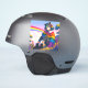 Anime Mädchen in Kopfhörern mit Katzenohren, Regenbogenpulli und Socken, die draußen sitzen.