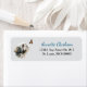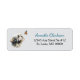 On this cute return address label, an image of an adorable Lhasa Apso Dog is fascinated by a flitting Monarch butterfly. Your custom text is in blue and black at the right of the image. Everything is placed on a pale silver gray background.