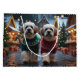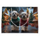 This festive design captures the joyful spirit of the holiday season, featuring an adorable dogs.Nestled in a winter wonderland, complete with a decorated Christmas tree, and beautifully wrapped presents. Snowflakes gently fall, adding a magical touch to the scene, while the vibrant colors of the holiday decorations create a warm and cheerful atmosphere.