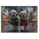 This festive design captures the joyful spirit of the holiday season, featuring an adorable dogs.Nestled in a winter wonderland, complete with a decorated Christmas tree, and beautifully wrapped presents. Snowflakes gently fall, adding a magical touch to the scene, while the vibrant colors of the holiday decorations create a warm and cheerful atmosphere.
