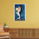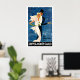 Dieses Vintage-Reiseplakat ist von einem Mann und einer Frau in formalem Kleid für eine Nacht auf der Stadt. Er trägt einen Tux und einen Top Hut und sie ist in einem weißen Kleid.