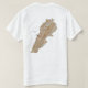Die Vorderseite dieses T - Shirt trägt eine kleine libanesische Fahne mit ihrem bekannten grünen Zedernbaum in einem weißen Band mit roten Bändern über und unter, während die Rückseite eine Reliefkarte des Libanon zeigt. Erhältlich auf T - Shirt, Sweatshirts, Polos, Langärmeln und vielem mehr.