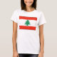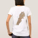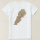 Die Vorderseite dieses T - Shirt zeigt die libanesische Flagge mit ihrem charakteristischen grünen Zedernbaum in einem weißen Band mit roten Bändern über und unter. Auf der Rückseite befindet sich eine attraktive libanesische Landkarte.