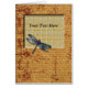 Eine schöne blaue Libelle schmückt diese Karte. Ein Hintergrund der Handschrift auf einem warmen tan Papier. Tragen Sie Ihren eigenen Text ein, um diese Karte Ihre Selbst einzigartig zu machen.