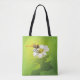 Eine Libelle über einer weißen Blume. Dieses Design sieht auf dieser Totbeutel wirklich effektiv aus