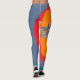 orange des Spaßes rote blaue und schwarze Libellen-Leggings mit einer enormen Libelle hinunter ein Bein auf einem roten und orange Kreismuster.