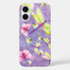 Abstrakte Libellen und Blitzkäfer auf lila Stoff.