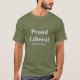 Verfügbar in jeder dunklen Farbe, proklamiert dieses T-Stück den Träger, um ein "stolzes Liberales" mit Anweisungen zu sein, die Rückseite zu sehen. Auf dem hinteren gerade aus dem Wörterbuch, eine Definition des Adjektivs heraus, "Liberaler". Der vordere Text ist eine veränderbare Schablone. Der hintere Text kann entfernt werden, wenn er gewünscht wird. Auch verfügbar auf hellfarbigen T - Shirts: