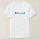 Ich wollte, einen T - Shirt zu tragen, der den Menschen leise berät, dass ich liberale demokratische Werte habe. Dieses Shirt macht genau das, in großzügigen Cooper Black-Schrift im Stil der 1970er Jahre mit jedem Buchstaben eine andere Farbe, einschließlich eines amerikanischen Fahnenmusters für den Buchstaben "i"! Stehen Sie für das ein, woran Sie glauben, für den Planeten, für die Menschheit, für den Frieden und dafür, mit einem liberalen T - Shirt auszukommen!