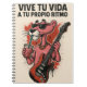Cuaderno con diseño urbano de la Pantera Rosa, acompañado de una guitarra eléctrica y la frase "Vive tu vida a tu propio ritmo". Ideal para amantes de la música y el estilo libre y otros. Perfecto para escribir ideas, letras, tareas o inspirarte día a día.