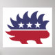 Dieses Design zeigt das Wahlsymbol des libertären US-Party. Das Logo ist öffentlich zugänglich. Im Gegensatz zum modernen Liberalismus und Progressivismus des demokratischen Party und dem Konservatismus des republikanischen Party fördert das Party im Allgemeinen eine klassische liberale Plattform. Zu den aktuellen finanzpolitischen Positionen zählen die Senkung der Steuern, die Abschaffung des Internen Einkommensdienstes (IRS), die Verringerung der nationalen Schulden, die Möglichkeit für die Menschen, sich aus der Sozialversicherung zu befreien, und die Beseitigung des Staat der Sozialleistungen, unter anderem durch die Nutzung privater Wohltätigkeiten. Zu den aktuellen kulturpolitischen Standpunkten gehören die Beendigung des Verbots illegaler Drogen, die Förderung einer Reform der Strafgerichtsbarkeit, die Unterstützung der gleichgeschlechtlichen Ehe, die Beendigung der Bestrafung der Hauptstadt und die Förderung von Eigentumsrechten an Schusswaffen. Es ist derzeit das drittgrößte politische Party in den Vereinigten Staaten durch Wählerregistrierung. Das Schwein wird als Symbol des Libertarismus benutzt, weil es ein defensives Tier ist, das niemandem schadet, der es allein verlasse.