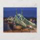 Szabadság híd (Liberty Bridge) in der Nacht, Budapest, Ungarn Die Liberty Bridge war die dritte Donau-Brücke in Budapest. Ursprünglich hieß es Franz Joseph Bridge. Die Brücke ist 333 Meter lang und 20 Meter breit. Die Brücke wurde zwischen 1894 und 1896 gebaut. Der letzte - aus Silber gefertigte - Niet wurde vom Kaiser Franz Joseph eingesetzt. (Es war keine schwierige Aufgabe: Der Kaiser drückte auf den Knopf und die Dampfmaschine legte den Niet.) Kurz darauf verschwand der Niet. Später wurde sie ersetzt. Der ersetzte Teil war mit Schutzglas bedeckt. (Heute können die Besucher nur das Schutzglas finden, weil auch der Ersatzniet verschwunden ist.) Im Jahr 1945 zerstörten die Nazis während des Zweiten Weltkriegs alle Donaubrücken Budapests. Die Brücke wurde rekonstruiert und in Liberty Bridge umbenannt.