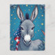 A charming, storybook-style illustration of a gentle gray donkey gazing forward with calm, expressive eyes. Draped over its shoulder is a flowing American flag, while golden stars scatter across a night sky. The piece feels whimsical yet dignified—perfect for Americana, election season designs, or rustic patriotic décor.