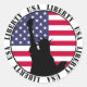 Dieses patriotische Design zeigt eine Silhouette der Freiheitsstatue auf dem Hintergrund der Rundflagge. Der Text umgibt das Lesen von "Liberty USA". Perfekt für den 4. Juli oder jederzeit!