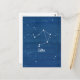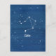 Eine Postkarte mit der Konstellation für Libra im Nachthimmel mit indigofarbenem Waschhintergrund. Spaß Postkarte, um an einen Freund der Libra zu schicken. Die anderen Sternzeichen finden Sie auf einer Vielzahl von Artikeln in meinem Shop.