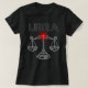 Dunkles Design mit der Waage der Libra, oben mit rotem Licht, alles in einem schwarzen Hintergrund.