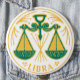 Libra - Sternzeichen des Zodiaks auf einer Tasche. Grün, Gelb und Weiß. Tragen Sie es wie eine Brosche oder Mode-Accessoire.