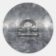 Libra Zodiac-Symbol im Stil eines silbernen Grunge Runder Aufkleber