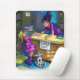 Bibliothek Karo out, Sie können nie zu viele BÜCHER! Mousepad zeigt unsere originale Kunst digital von Traci Van Wagoner, einem talentierten Kidsbucher Illustrator, gemalt (www.tracivanwagoner.com), von einem Mädchen und ihrem Hund in der Bibliothek, der einen Haufen Bücher aus der Bibliothek schaut. Dieses lustige Gemälde ist ein Geschenk für Bibliothekare, Lehrer, Alte und Junge, Bibliophile und Buchliebhaber und alle, die Lieben zu lesen.