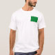 Die Vorderseite dieses T - Shirt trägt eine kleine libysche Fahne mit ihrem bekannten weißen Halbmond und Stern in einer schwarzen Band mit roten Bändern über und grünem Band unten, während die Rückseite eine Reliefkarte Libyens zeigt. Erhältlich auf T - Shirt, Sweatshirts, Polos, Langärmeln und vieles mehr.