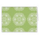 Diese weiße Mandala sitzt auf einem hellen, gelblich grünen Hintergrund. Die Farbe ist natürlich und optimistisch. Teil der Rosenn Mandala Kollektion.