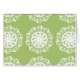Diese weiße Mandala sitzt auf einem hellen, gelblich grünen Hintergrund. Die Farbe ist natürlich und optimistisch. Teil der Kowas Mandala Kollektion.