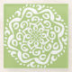 Diese weiße Mandala sitzt auf einem hellen, gelblich grünen Hintergrund. Die Farbe ist natürlich und optimistisch. Teil der Kylgh Mandala Kollektion.