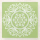 Diese weiße Mandala sitzt auf einem hellen, gelblich grünen Hintergrund. Die Farbe ist natürlich und optimistisch. Teil der Rosenn Mandala Kollektion.