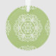 Diese weiße Mandala sitzt auf einem hellen, gelblich grünen Hintergrund. Die Farbe ist natürlich und optimistisch. Teil der Rosenn Mandala Kollektion.
