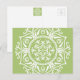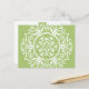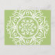Diese weiße Mandala sitzt auf einem hellen, gelblich grünen Hintergrund. Die Farbe ist natürlich und optimistisch. Teil der Rosenn Mandala Kollektion.