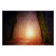 Licht am Ende des Waldes. Die Sonne scheint durch die bewaldeten Bäume, die von Moos bedeckt sind. frontiernow.com